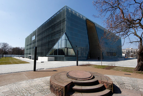 Budynek Muzeum powstał w symbolicznym miejscu – na przeciwko pomnika Bohaterów Getta, otoczony z każdej strony szarymi powojennymi budynkami wzniesionymi na gruzach getta.