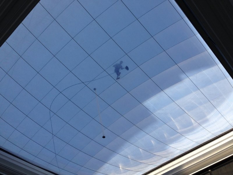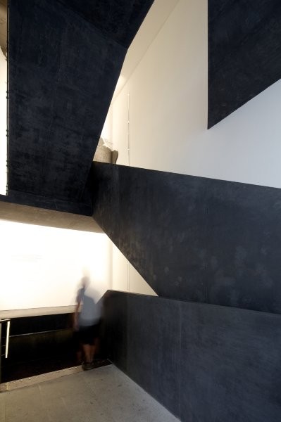 Interwencja jest niemal niewidoczna z zewnątrz – architektura nie konkuruje z historycznym budynkiem, lecz uzupełnia go.