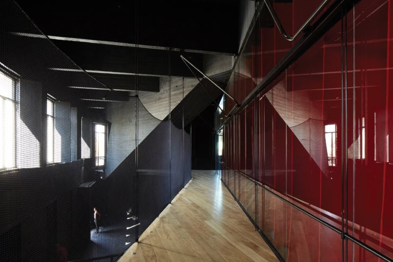 Interwencja ta nie jest ani renowacją, ani wymianą, ale starannym dostosowaniem skali i przeznaczenia. Ciężkie ściany i zamknięte pomieszczenia ustępują miejsca pustkom, które pochłaniają ruch, dźwięk i zgromadzenia. Powyżej, taras na dachu pokryty namiotem cyrkowym wprowadza nieoczekiwaną lekkość i atmosferę tymczasowej uroczystości zaprogramowanej wydarzeniami społecznościowymi, która kontrastuje z przyziemną intymnością poniżej.