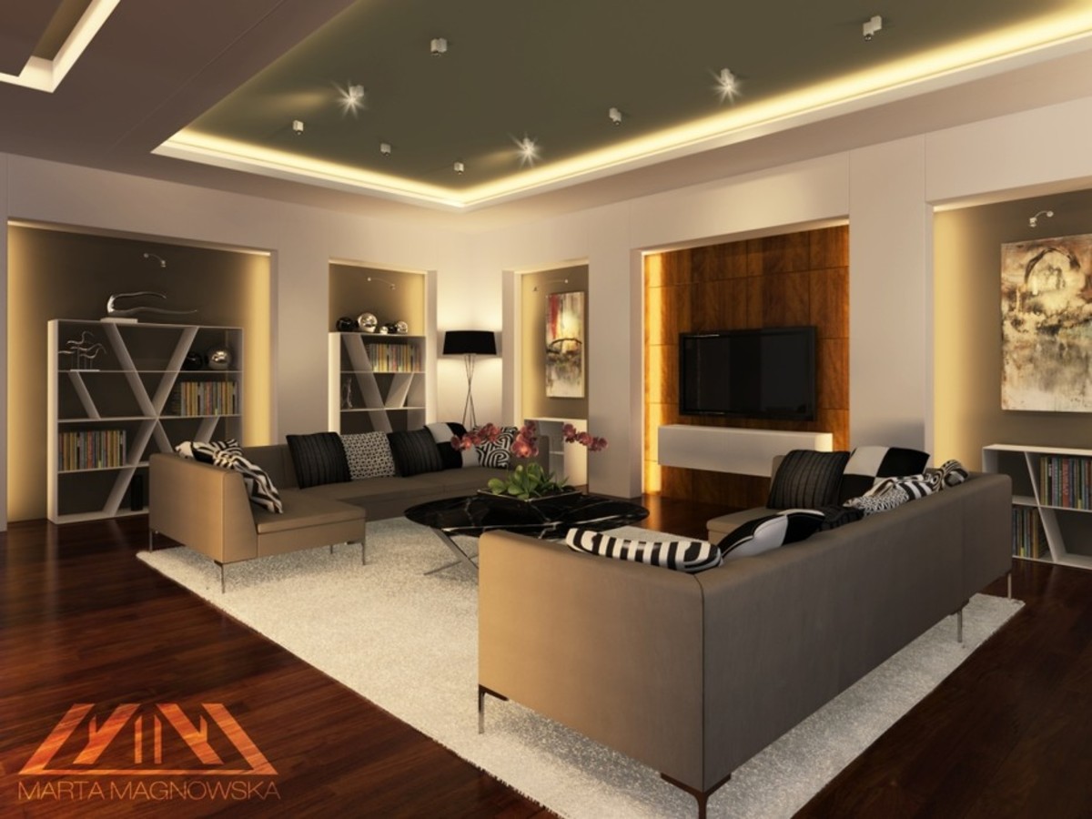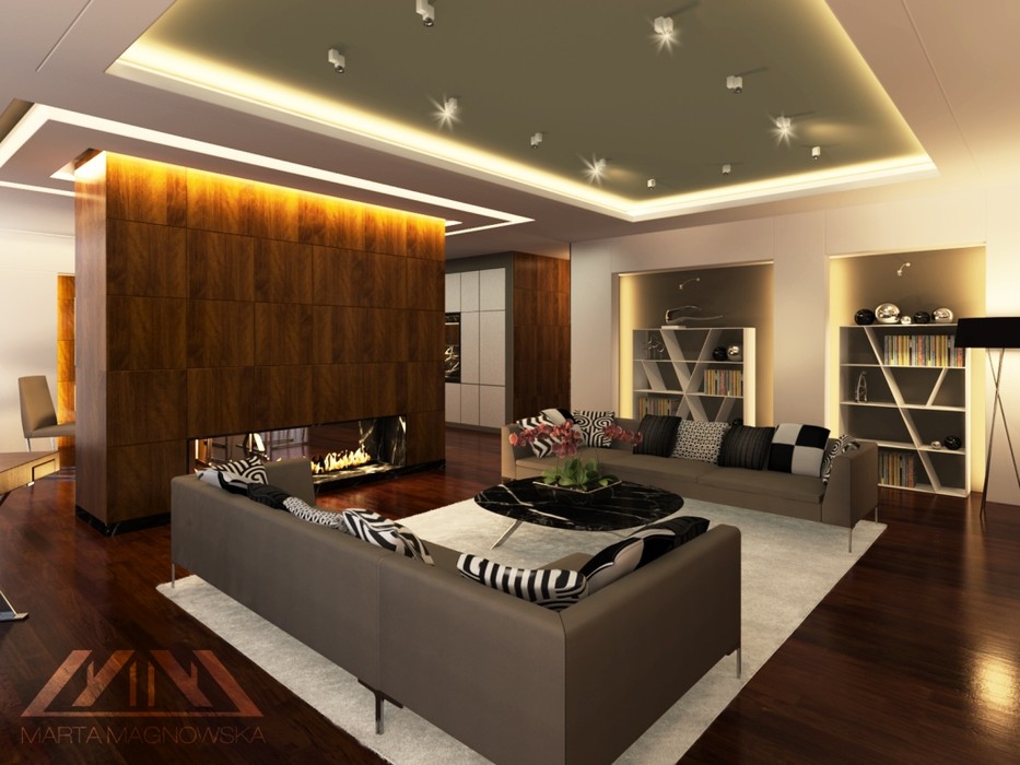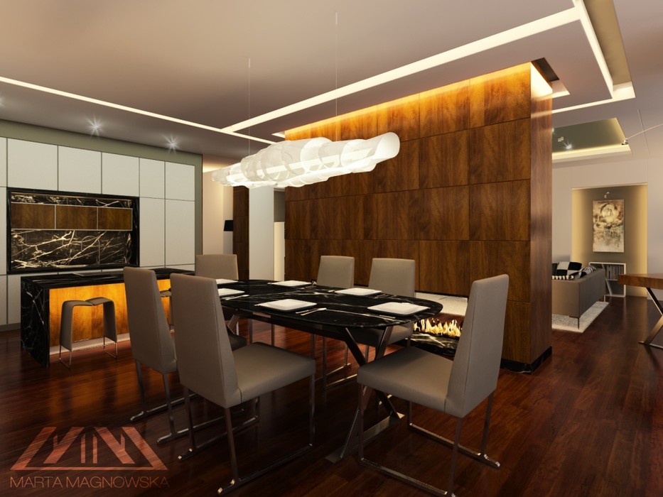 Loft na poddaszu. Stoliki na wizualizacjach to projekty Wood Design.