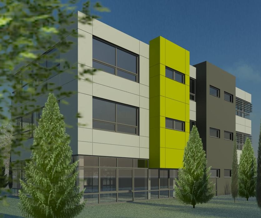 Budynek biurowy firmy West-Pol. Trzy kondygnacje nadziemne, podpiwniczony. Klatka schodowa z zapleczem sanitarnym rozdzielająca bryłę budynku na dw...