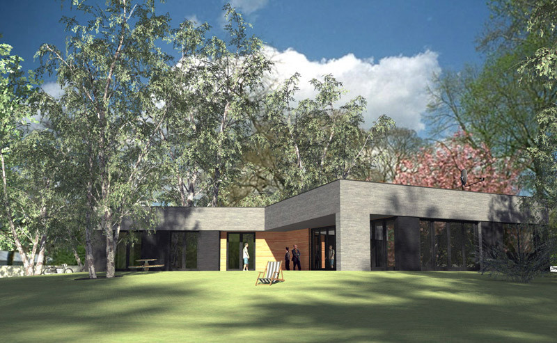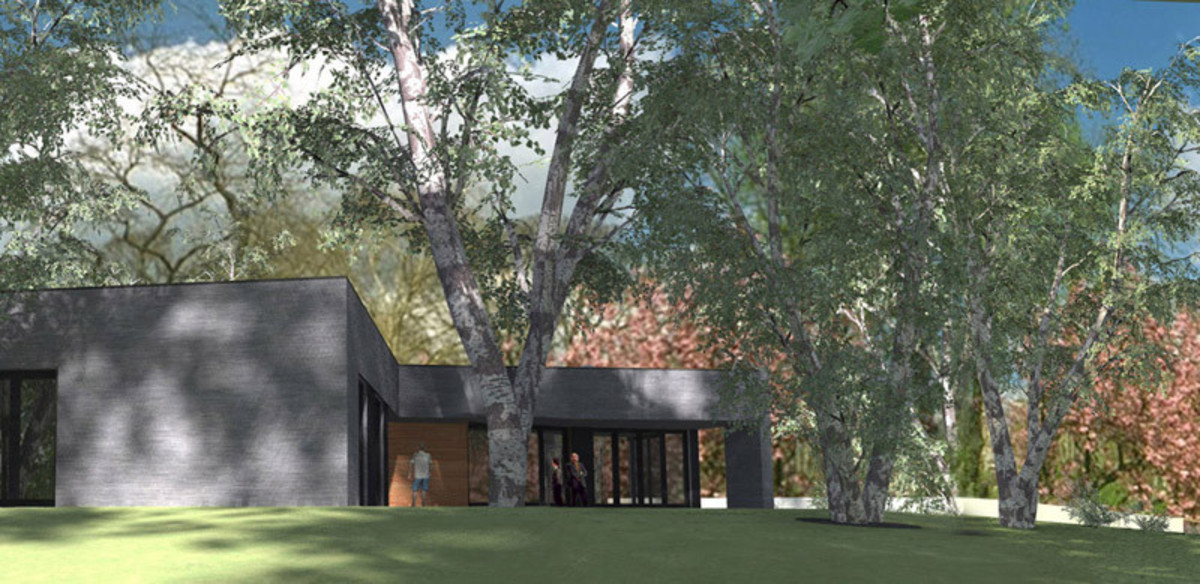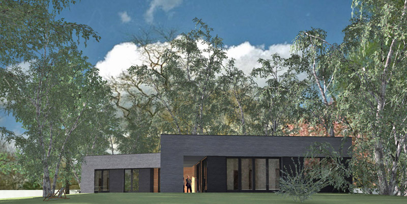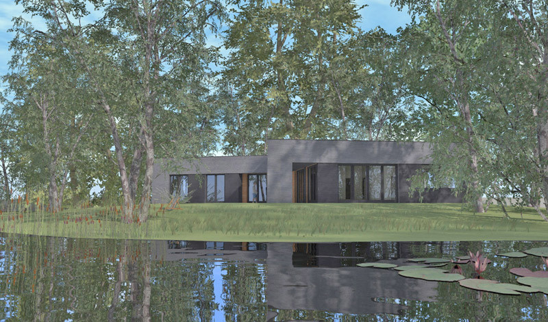 Dom został wyniesiony ponad teren - przy wykorzystaniu ziemi z projektowanego stawu.