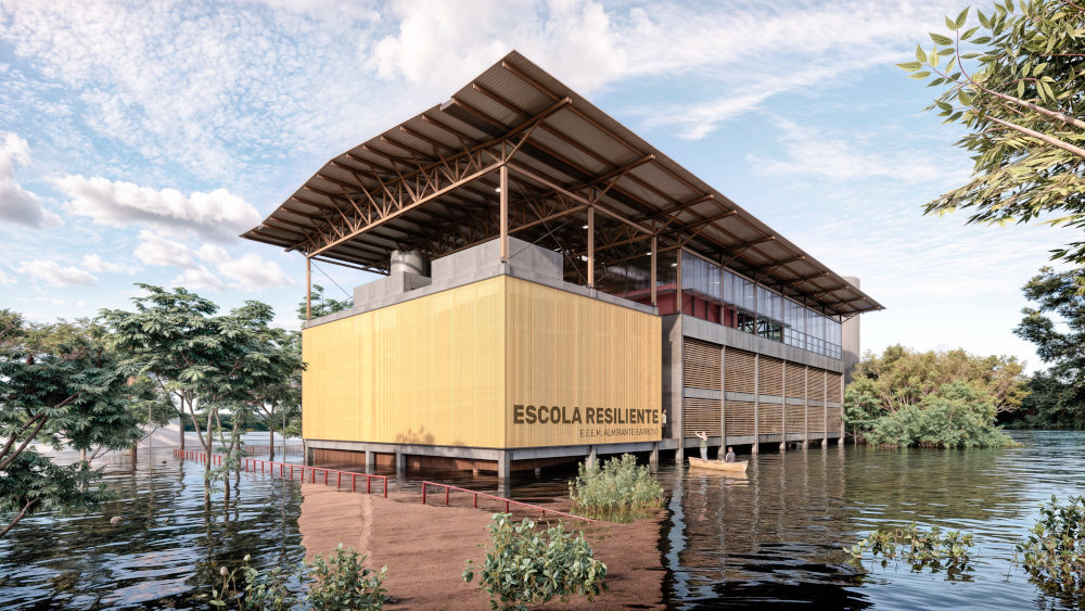 Architekci Andrade Morettin Arquitetos Associados opracowali system szkół, które zachowują funkcjonalność podczas zalania terenu. Podniesione konstrukcje chronią klasy przed wodą, a dachy pełnią funkcję schronienia w czasie ekstremalnych zjawisk pogodowych. To przykład inteligentnego projektowania, które odpowiada na lokalne zagrożenia klimatyczne i wzmacnia bezpieczeństwo społeczności.
