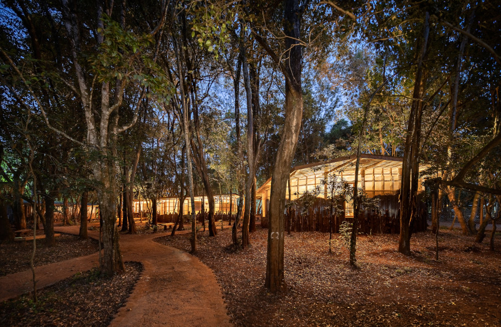 Projekt Urko Sánchez Architects tworzy przestrzeń edukacyjną wpisaną w naturalne otoczenie lasu. Inspiracje tradycyjnymi chatami i zastosowanie lokalnych materiałów budują więź z miejscem i kulturą.