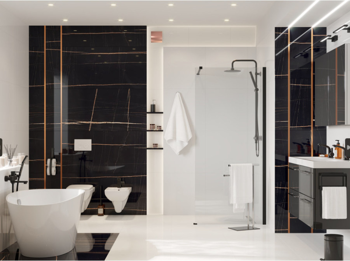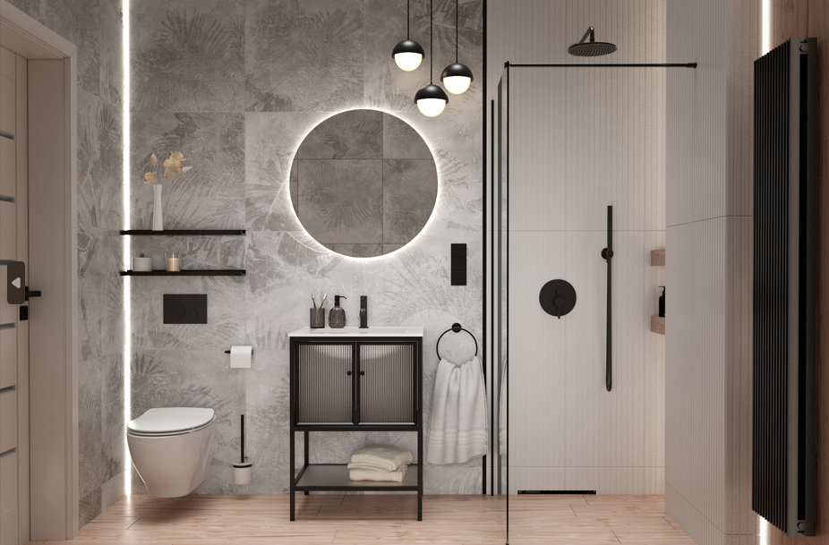 Pasuje wprost idealnie do aranżacji minimalistycznych i nowoczesnych. To ze względu na jej prostotę – ograniczona kolorystyka i geometryczne kształty sprawiają, że sprawdza się w tego typu wnętrzach doskonale. Świetnie będzie współgrała z białymi lub szarymi płytkami wielkoformatowymi i z chromowanymi dodatkami.