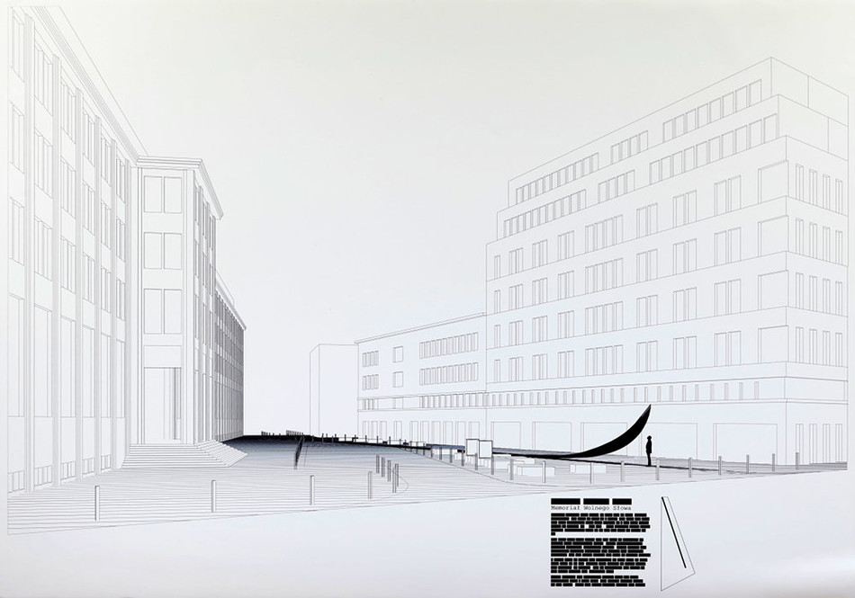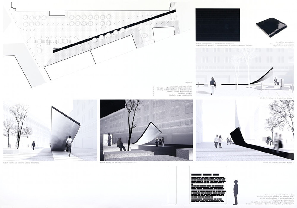 Zaproponowany układ i forma memoriału ma być w przeświadczeniu autorów wyraźnym i jednoznacznym gestem w przestrzeni ulicy Mysiej - symbolicznym znakiem spajającym poszczególne elementy nawarstwień historycznych. Za punkt wyjścia - inspirację, która ostatecznie zdefiniowała surową i monochromatyczną estetykę pomnika - potraktowano fizyczny zapis cenzurowanych tekstów. Wykreślenie w formie czarnych linii, których pełne są niewygodne dla establishmentu dokumenty na całym świecie, w tym również w archiwach PRL-u, stanowią wymowny symbol łamanego prawa do wolnej wypowiedzi i dostępu do informacji.