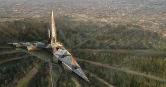 Rosja, Syberia, 2007. Projekt: Foster and Partners. Budynek osiągnął wysokość 280 metrów, z liczbą 56 pięter i 161 tys. metrów kwadratowych.