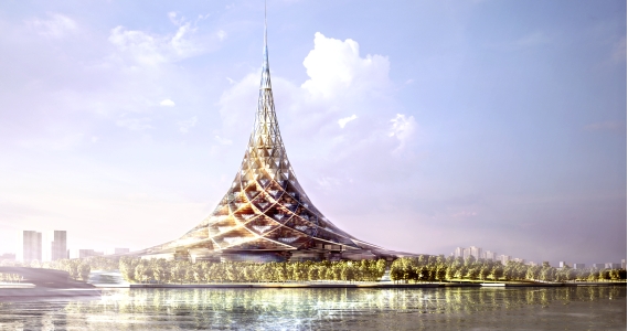 Projekt: Foster and Partners. Rosja, Moskwa 2006. Obiekt leży nad rzeką Moskwą i znajduje zaledwie 7,5 km od Kremla.