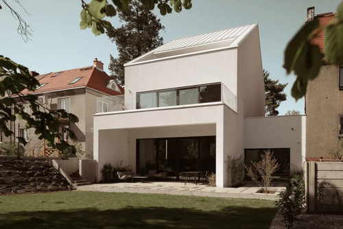 Projekt obejmuje dwukondygnacyjny dom jednorodzinny z płaskim dachem (zgodnie z MPZP – jednospado...