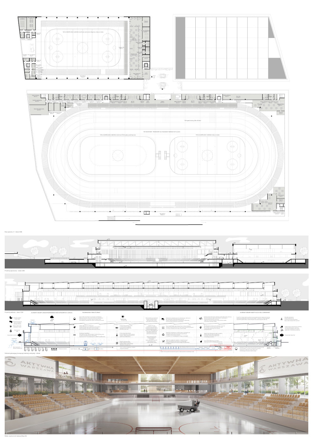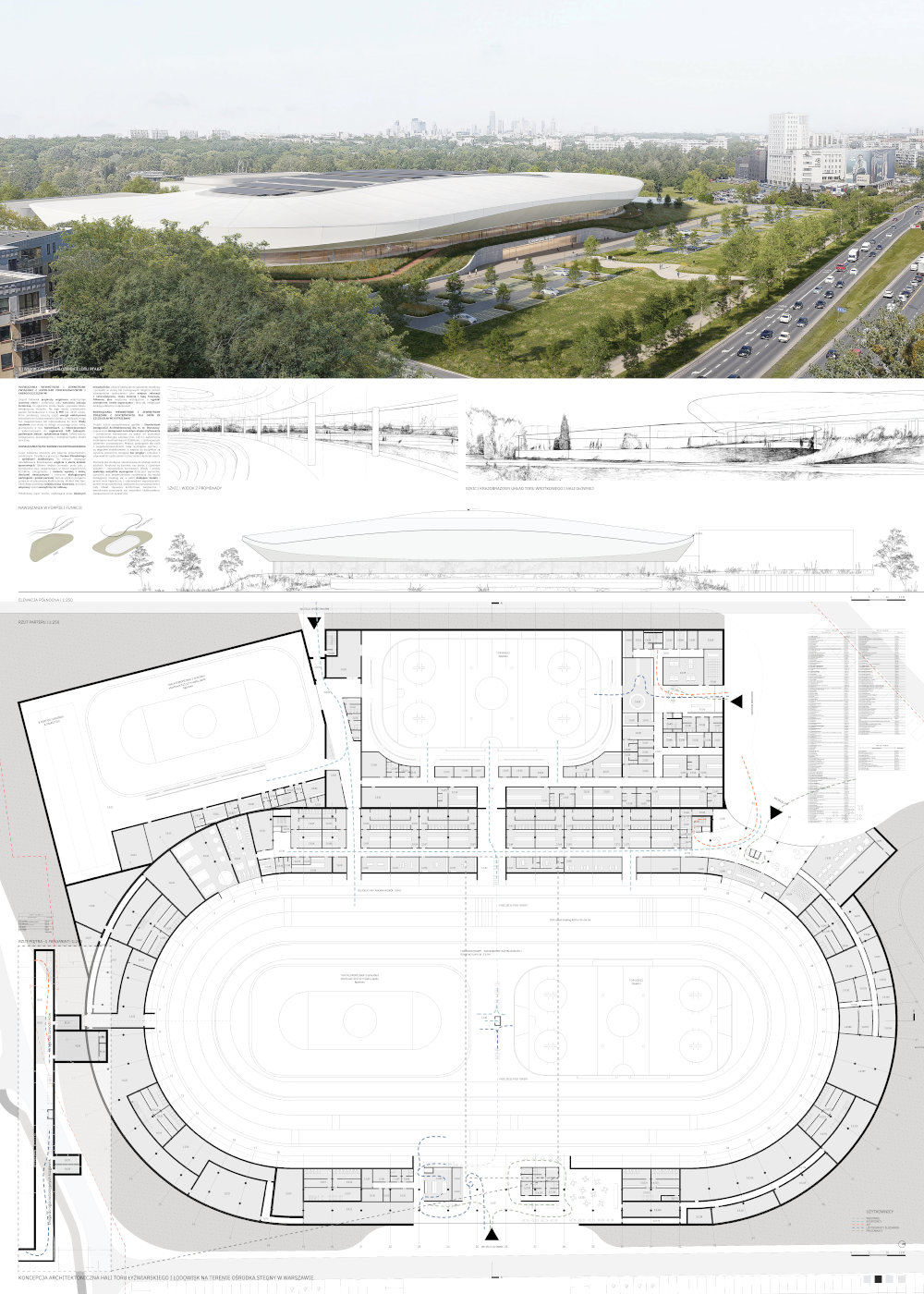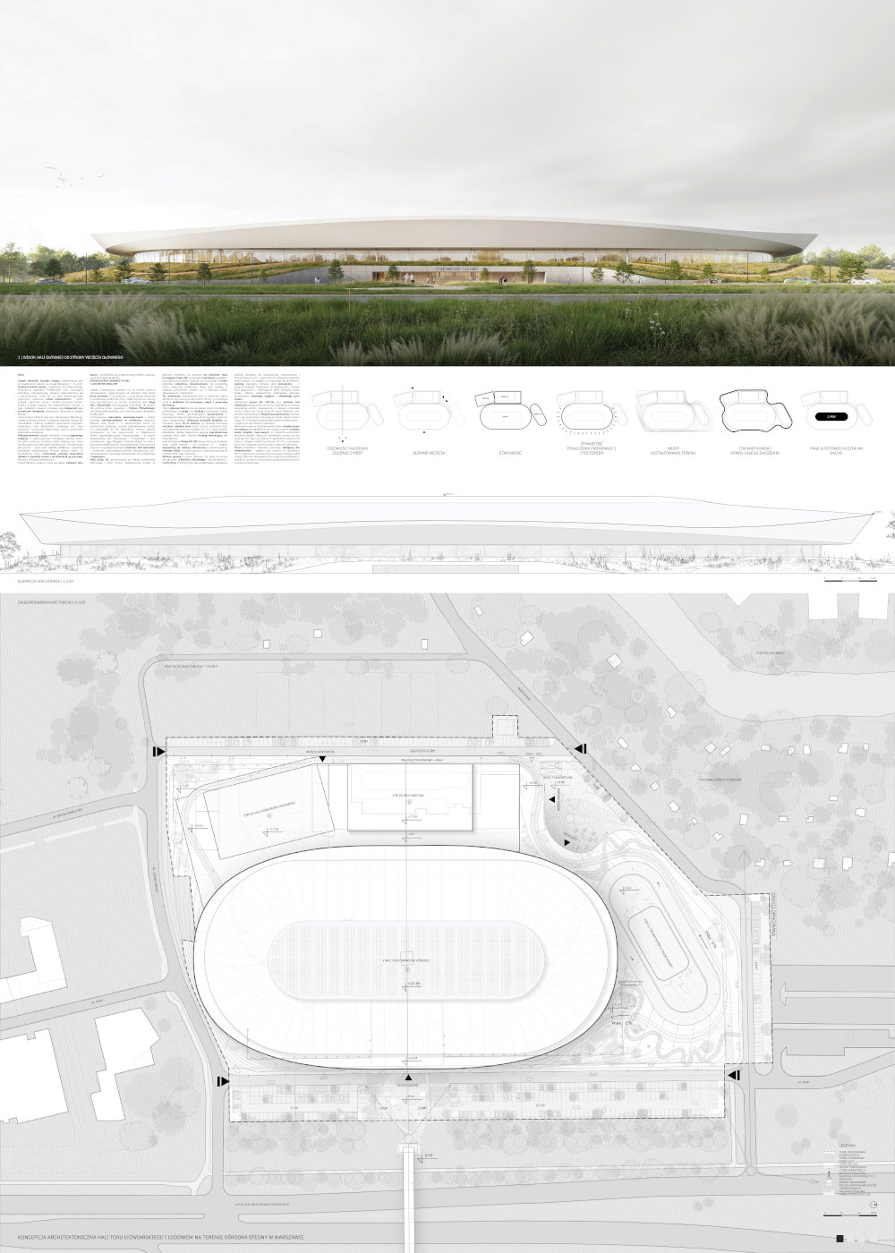 Praca jest szansą na realizację ważnego obiektu sportowego, który będzie znaczący w pejzażu architektonicznym Warszawy i przyjazny dla społeczności lokalnej.