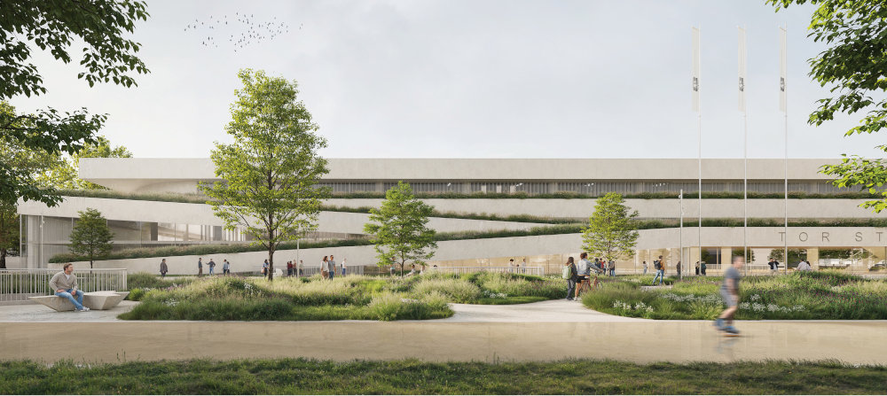 Cokół budynku otwarty dla funkcji usługowych wraz z wyniesioną esplanadą wzmacnia jego rolę miastotwórczą i pozwala na integrację ze społecznością lokalną. Tak pomyślany obiekt jest atrakcyjny dla różnych grup użytkowników — dla widzów imprez sportowych, dla sportowców i mieszkańców.