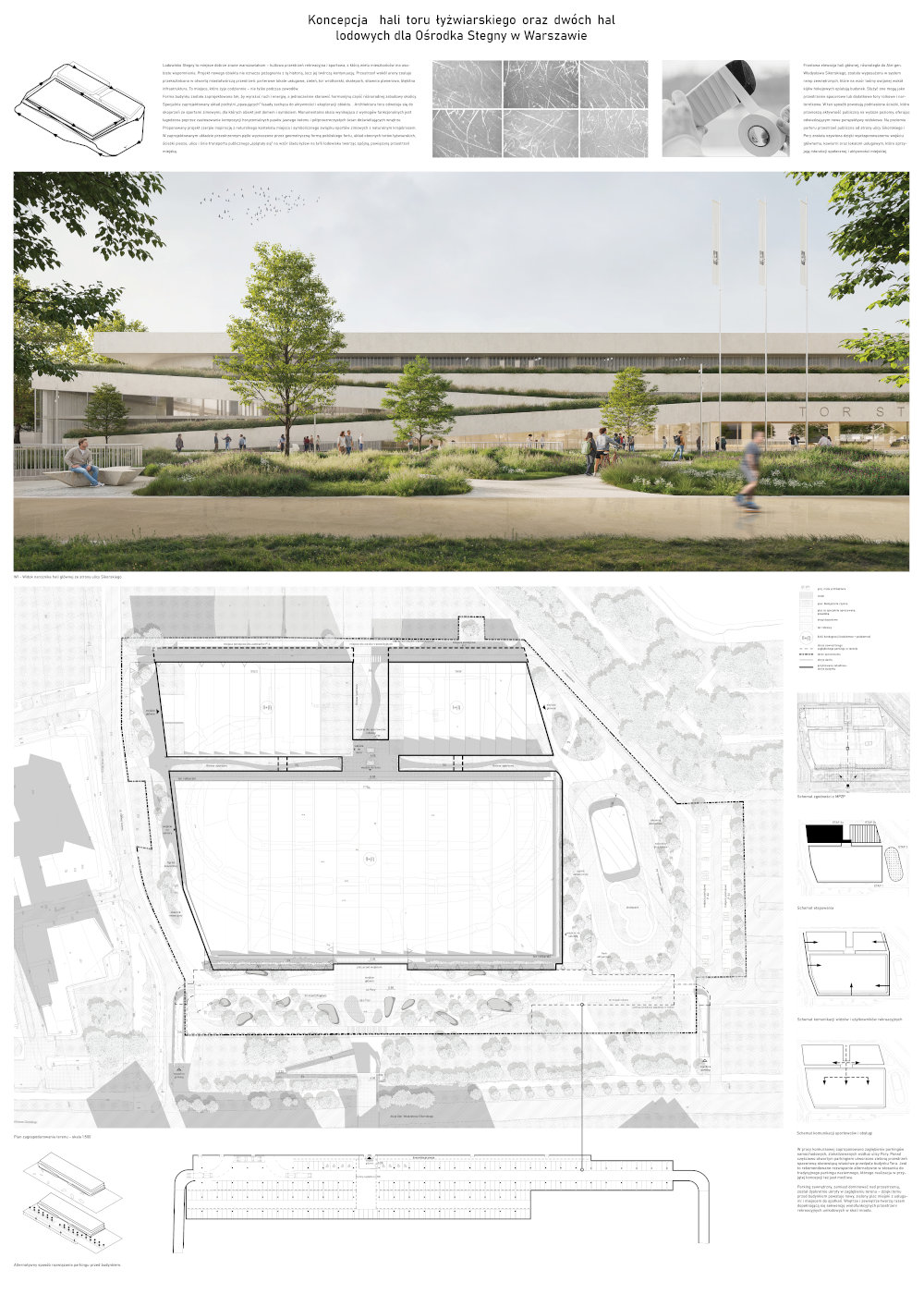 Przedmiotem konkursu było wykonanie koncepcji architektoniczno-urbanistycznej nowego kompleksu sportowego Ośrodka Stegny w Warszawie, obejmującego halę łyżwiarstwa szybkiego oraz dwie hale lodowe – planowanego w miejscu obecnego obiektu pochodzącego z lat 70. XX w.