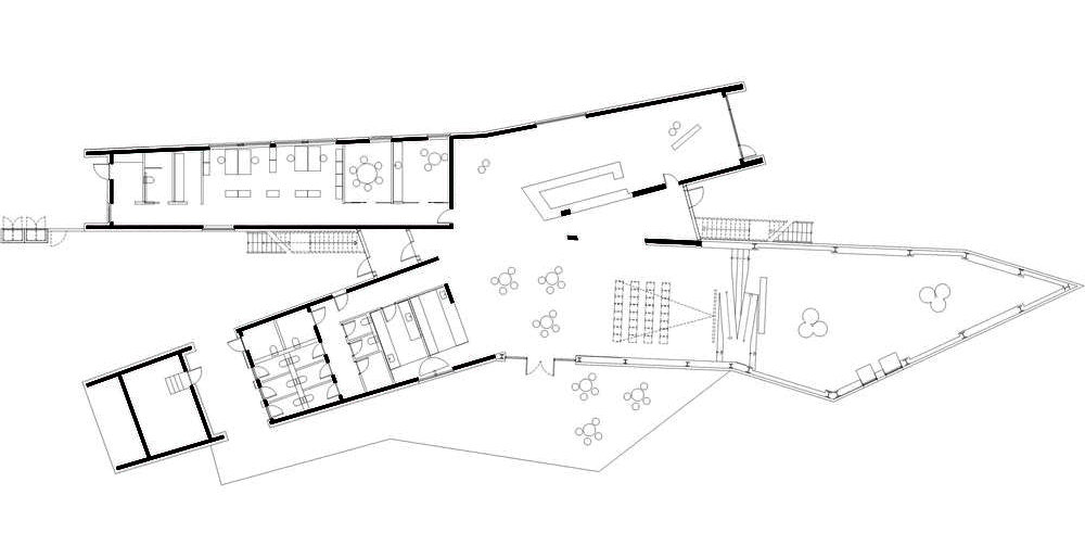 Ścieżka z parkingu prowadzi ku budynkowi, przecinając pole lawy, a linia wzroku jest celowo ograniczona, aby stworzyć efekt stopniowego odkrywania. W miarę zbliżania się, Centrum ujawnia swoje otoczenie – przestrzeń edukacji, kultury i rekreacji, które łączą się w swoisty „tygiel doświadczeń”. Z tej przestrzeni ścieżka kontynuuje bieg w górę przylądka, oferując panoramiczne widoki na lodowiec Snæfellsjökull, morze i okoliczne wzgórza.
