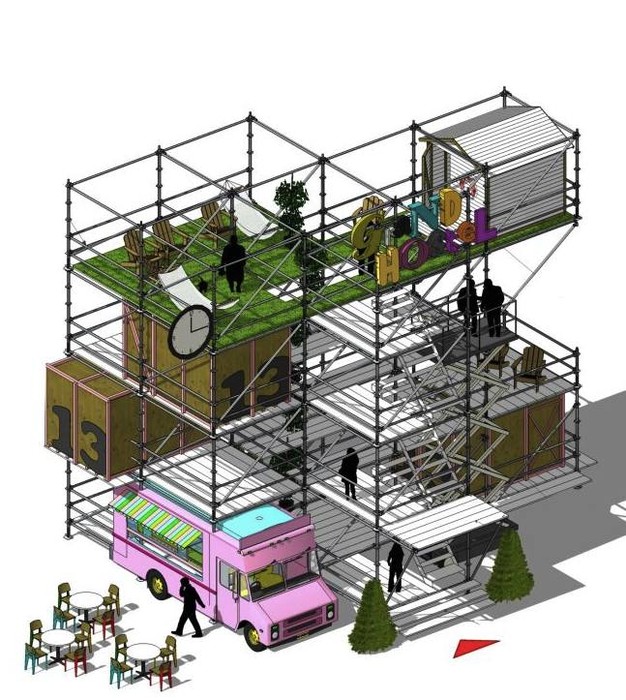 Nawiązując do kurortowego charakteru miasta na Placu Przyjaciół Sopotu stanie niezwykły obiekt-instalacja o nazwie Grand Hostel, zaprojektowany przez architekta Filipa Kozarskiego.