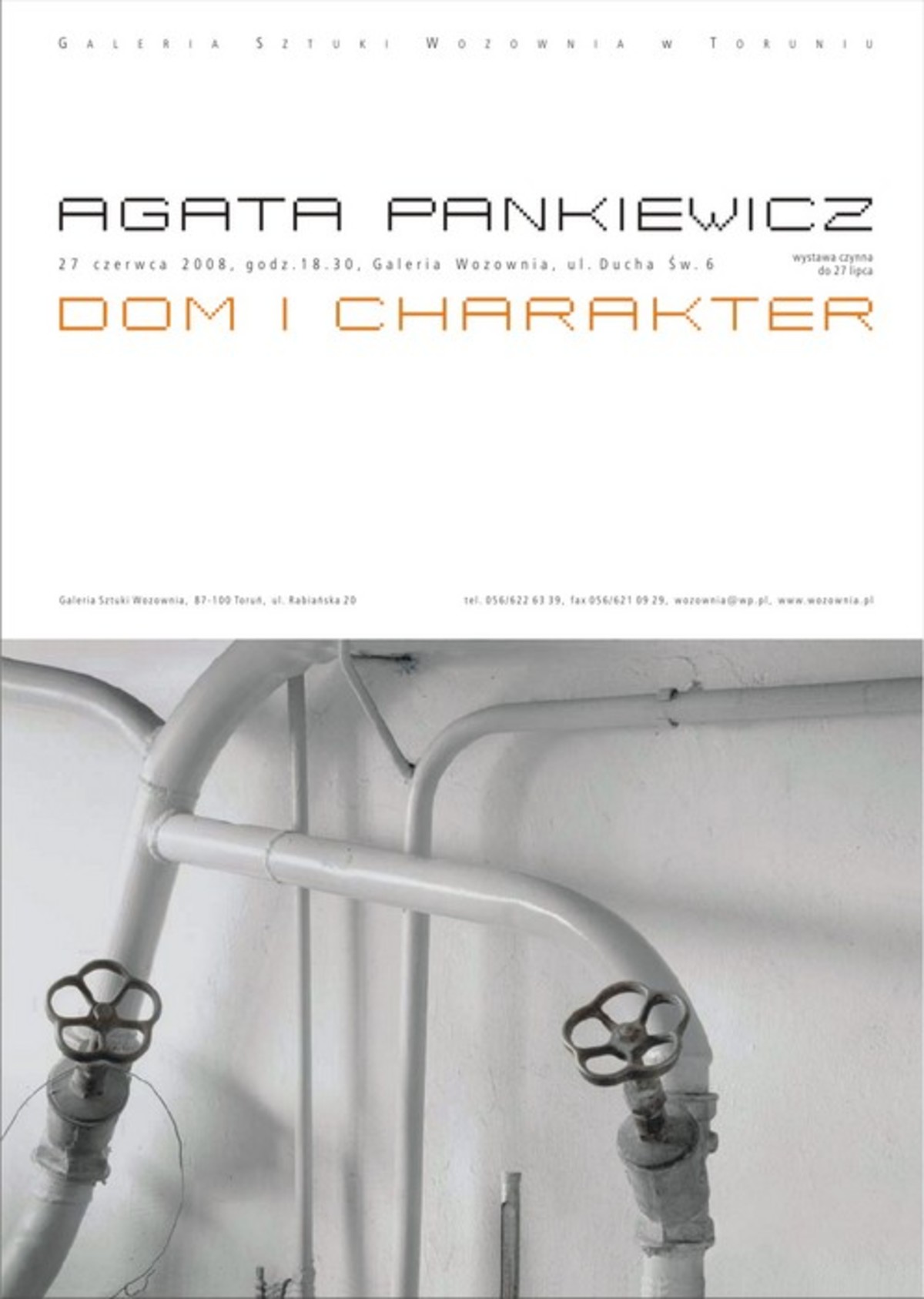 Na projekt Agaty Pankiewicz składają się trzy zestawy prac: widoki domów o zaskakujących elewacjach otoczonych nierzadko ogrodzeniami; sterylne kadry minimalistycznych wnętrz oraz zdjęcia destruktów industrialnych stanowiących pozostałości czegoś nie powstałego, bądź już minionego. W efekcie powstaje przestrzeń nasycona wrażeniem izolacji, pustką i niepewnością towarzyszącą współczesnemu człowiekowi. Jednocześnie, zaskakujące swą dziwacznością elewacje domów staja się figurami wyrażającymi ignorancję i osamotnienie codziennej egzystencji. Ich deformacje, przywodząc na myśl kalectwo budzące litościwe współczucie, czasem nawet sympatię – zdaja się Stanowic zaprzeczenie idei piękna wyrażanego poprzez dążenie do harmonii pomiędzy wykreowanym a naturalnym – jak gdyby przepowiadając kres cywilizacji. W serii widoków fragmentów wnętrz, o prostej do identyfikacji funkcji spotykamy innego rodzaju napięcie wynikające z wyizolowania detalu i całkowitej redukcji intymności.