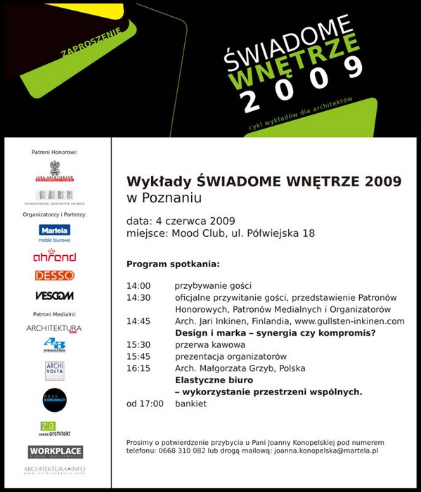 Celem spotkań jest ułatwienie kontaktów polskich architektów z uznanymi, wielokrotnie nagradzanymi, zagranicznymi projektantami wzorów przemysłowych oraz architektami wnętrz, przybliżenie europejskich trendów w zakresie design’u i formy oraz kompleksowego podejścia do projektowania wnętrz komercyjnych. Prezentacje zostaną wsparte konkretnymi rozwiązaniami spotykanymi na rynkach europejskich w ramach wykładów: