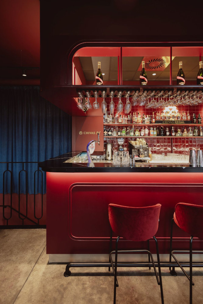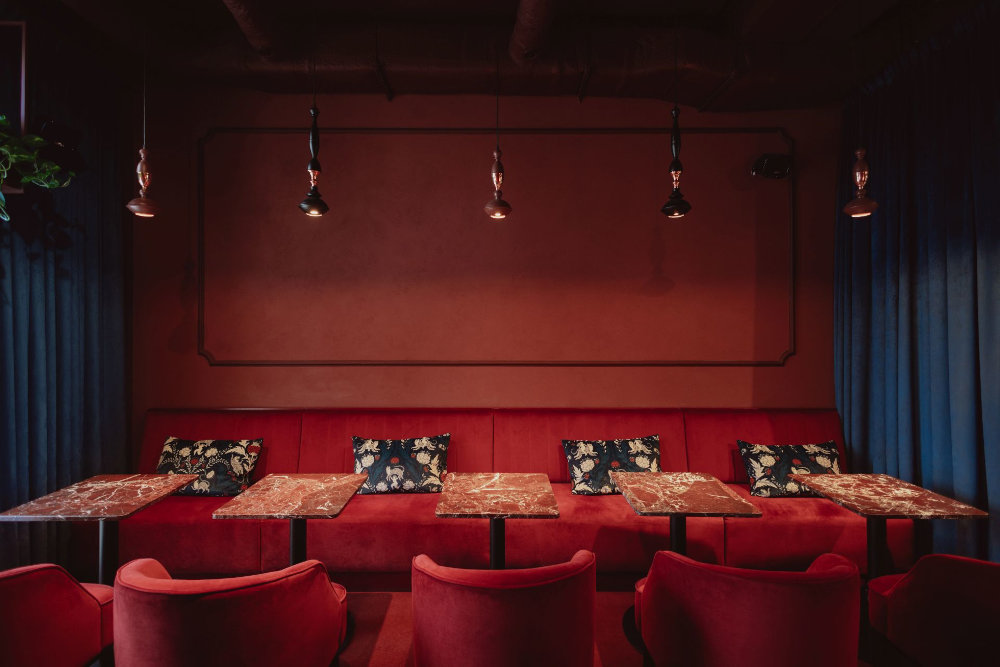 – Duszą tej przestrzeni jest delikatnie rzeźbiony bar, wykończony stalą w odcieniu burgundu – mówi Maja Skołysz z M19 Architekci. – Miękkie tkaniny współistnieją tu z secesyjnymi sztukateriami i szlachetnymi materiałami, a całość dopełnia grafika Barta Sucharskiego. Nawet toaleta staje się osobnym, kameralnym epizodem tej opowieści.