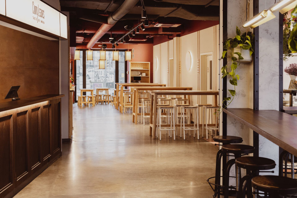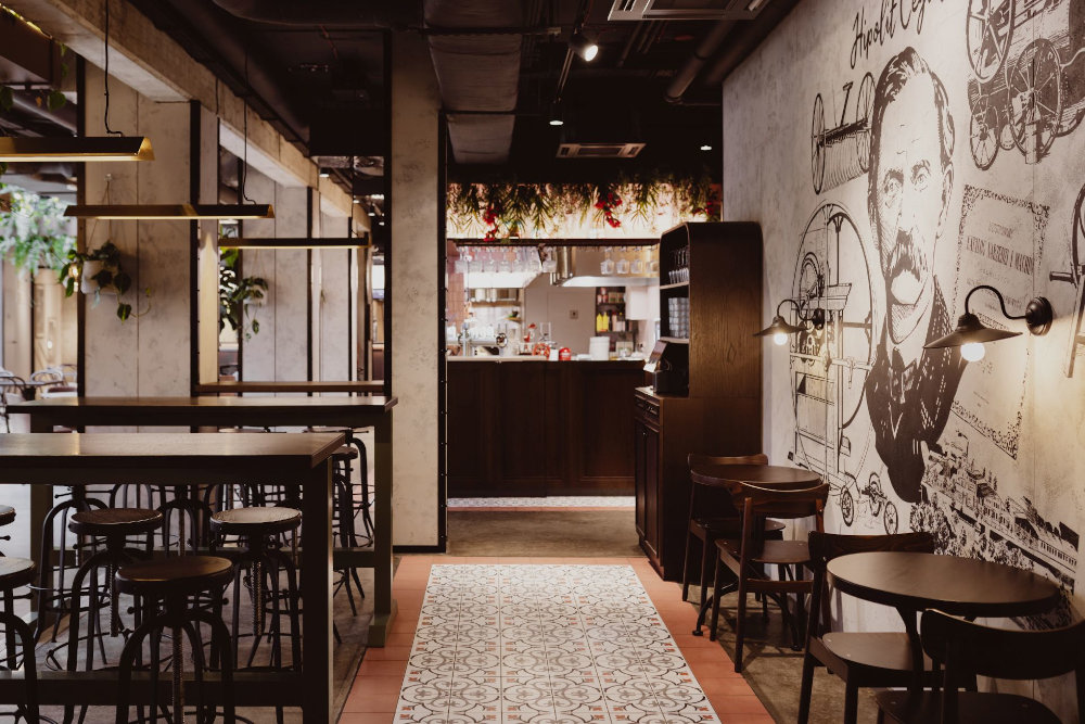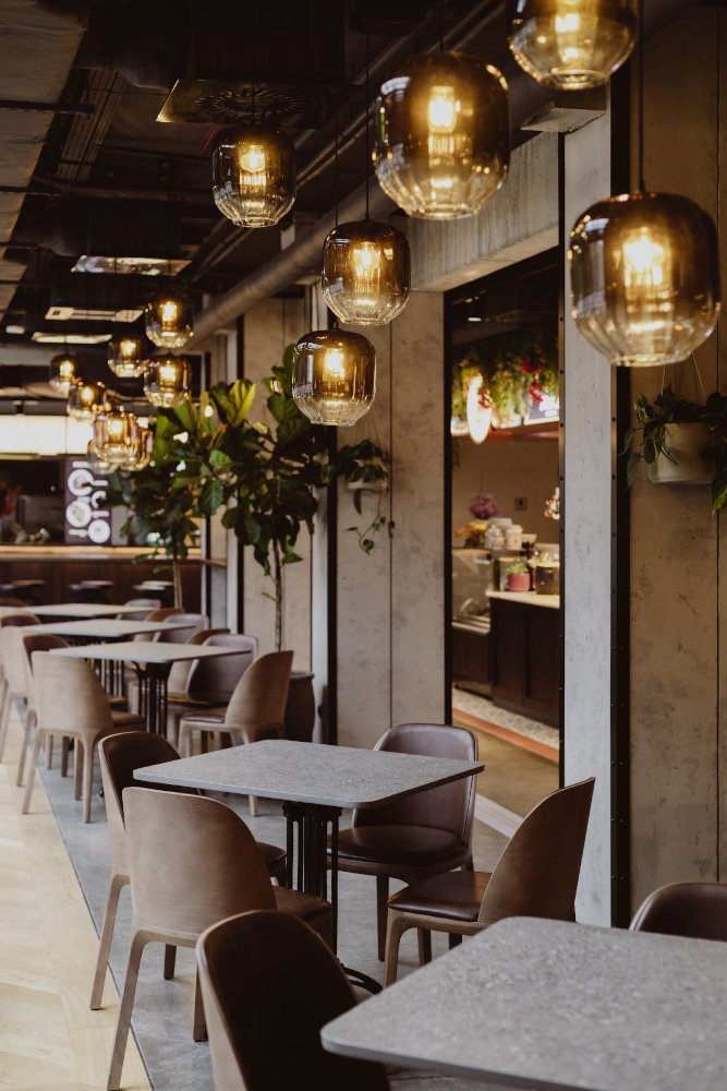 Zadaniem projektowym było znalezienie równowagi między ciężarem historii a potrzebą stworzenia otwartej, tętniącej życiem przestrzeni gastronomicznej. Tak narodziła się Kulinarna Kamienica – współczesny Restaurant Market z dziesięcioma kuchniami i trzema barami, zróżnicowanymi stylistycznie, lecz podporządkowanymi jednej narracji.