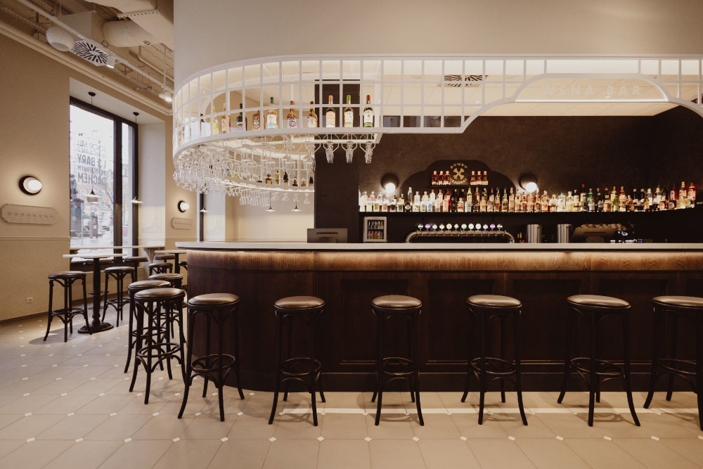 Kamienica Wiedeńska powstała na początku XX wieku jako reprezentacyjna, handlowa kamienica w stylu secesyjnym. Misterna ornamentyka, witraże i artystyczne detale budowały jej prestiż przy jednym z ważniejszych traktów śródmieścia. Po wojnie i w kolejnych dekadach obiekt ulegał licznym przebudowom, tracąc spójność i dawny blask. Skala realizacji – ponad 1500 m² na trzech kondygnacjach – wymagała precyzyjnej koordynacji i pogodzenia wymogów nowoczesnej gastronomii z konsekwentną wizją projektową.