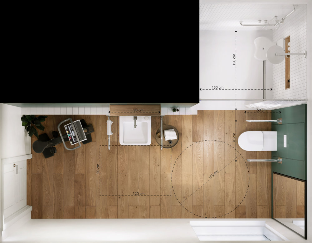 Dla zapewnienia osobom z niepełnosprawnością odpowiedniego komfortu i bezpieczeństwa podczas korzystania z łazienki publicznej, musi mieć ona odpowiednie wymiary.